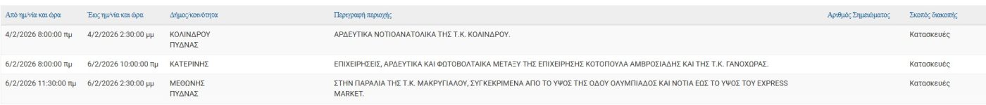 Σύμφωνα με ανακοίνωση της ΔΕΔΔΗΕ Α.Ε., Προγραμματισμένη διακοπή ρεύματος 04/02 και 06/02 στις εξής τοποθεσίες:
