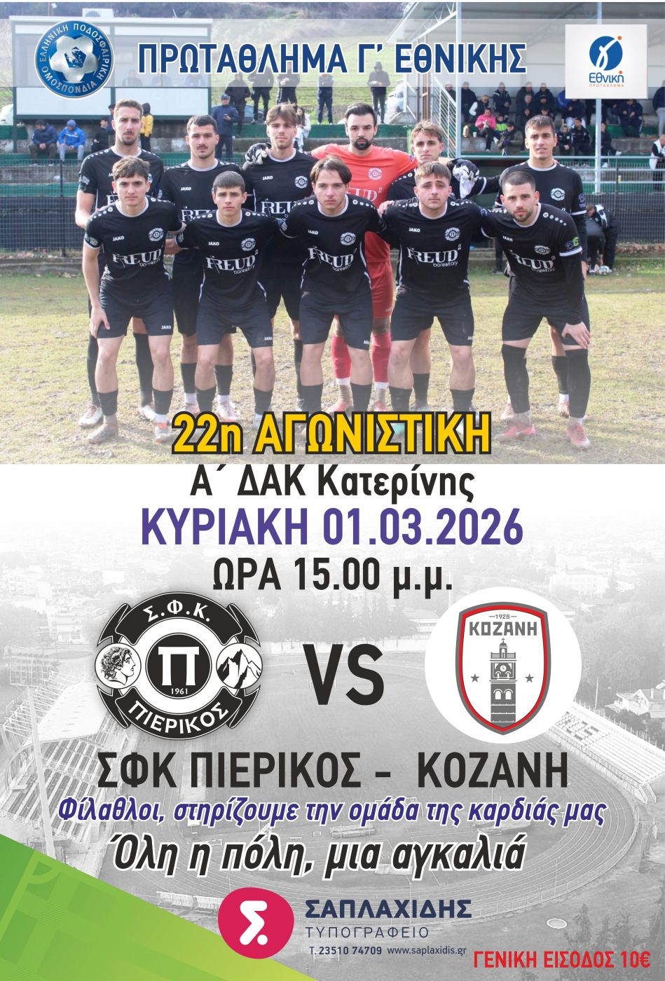 Πρωτάθλημα Γ΄ Εθνικής: ΣΦΚ Πιερικός – Κοζάνη