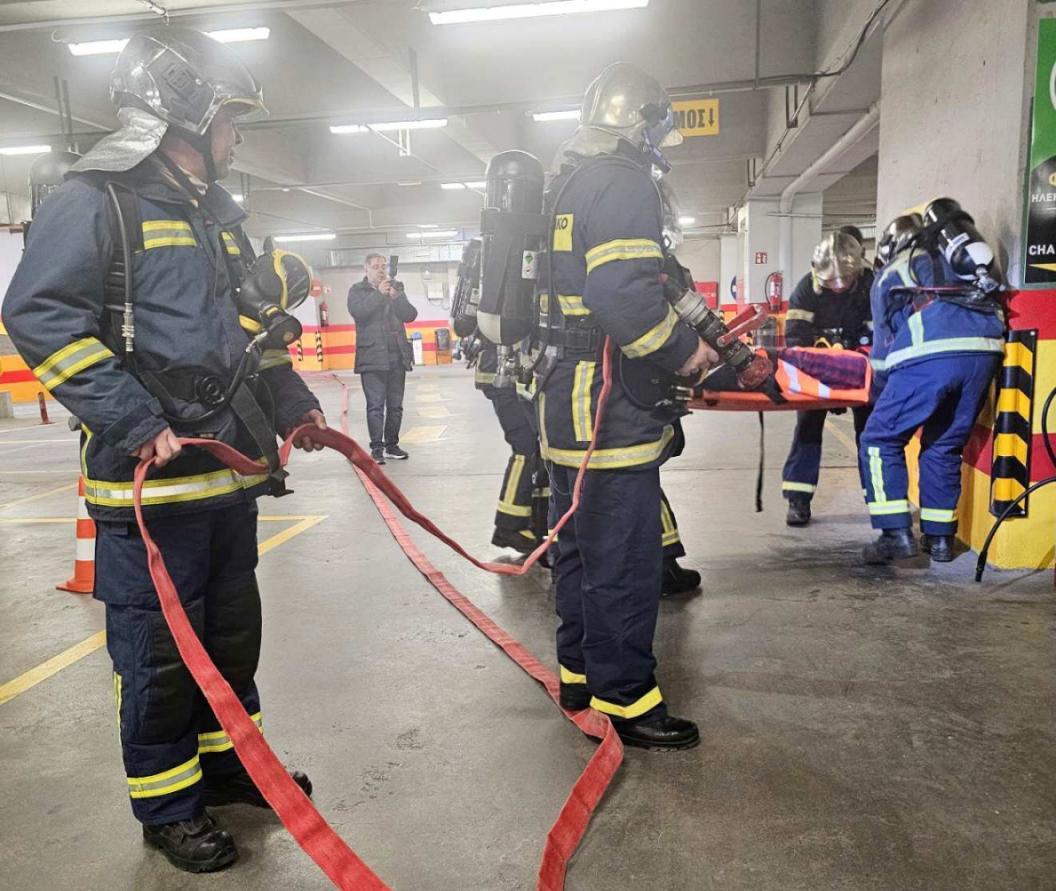 Συγκεκριμένα, το σενάριο της άσκησης επικεντρώθηκε στη διαχείριση κρίσιμου συμβάντος που προκλήθηκε από την εκδήλωση πυρκαγιάς στη διάρκεια φόρτισης ηλεκτρικού αυτοκινήτου και περιλάμβανε, μεταξύ άλλων, απεγκλωβισμό πολιτών που προσπαθούσαν να διαφύγουν, καθώς και διακομιδή τραυματία με ασθενοφόρο, έλεγχο συστημάτων πυρανίχνευσης, εξαερισμού και εκκένωση.