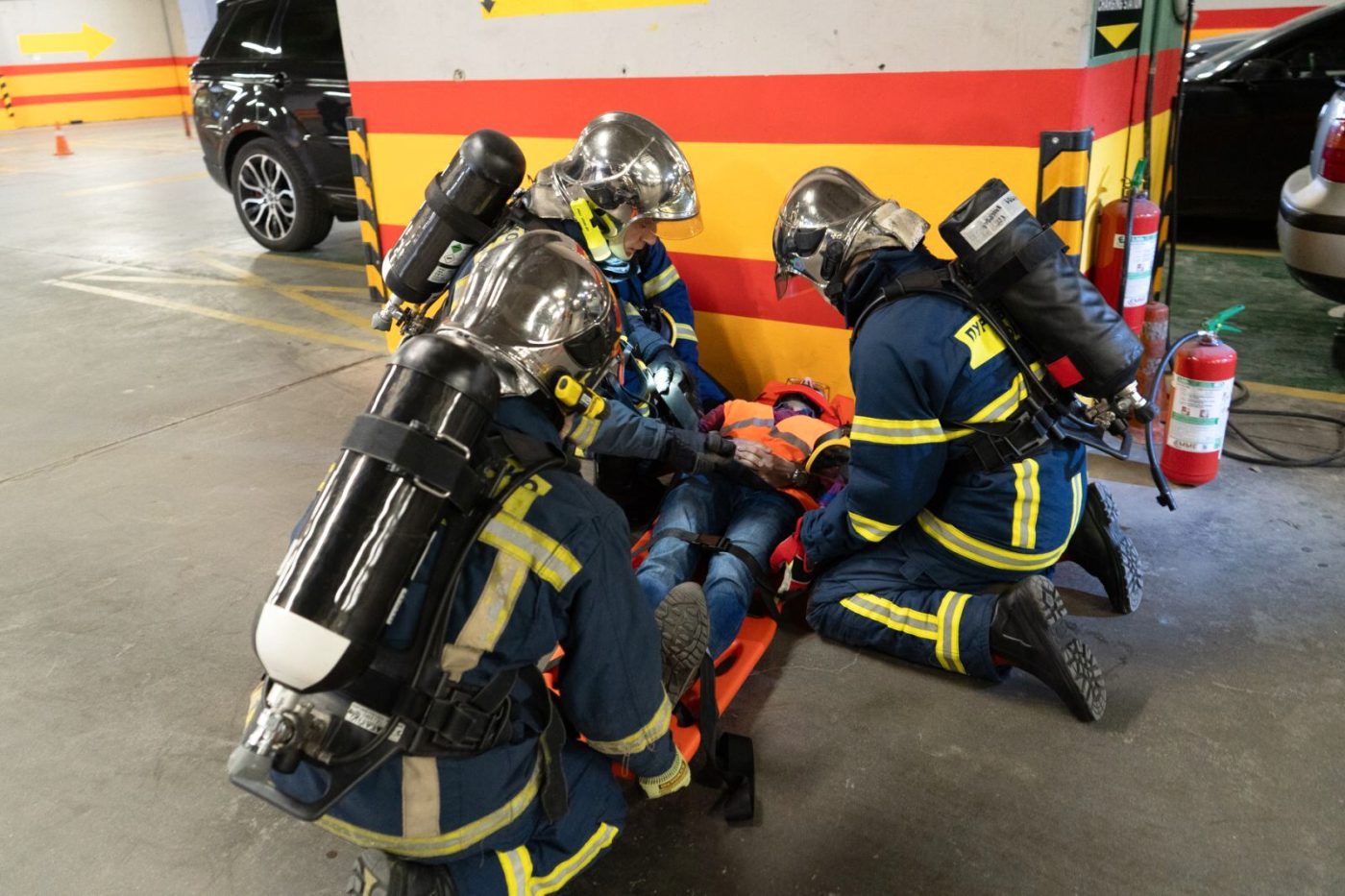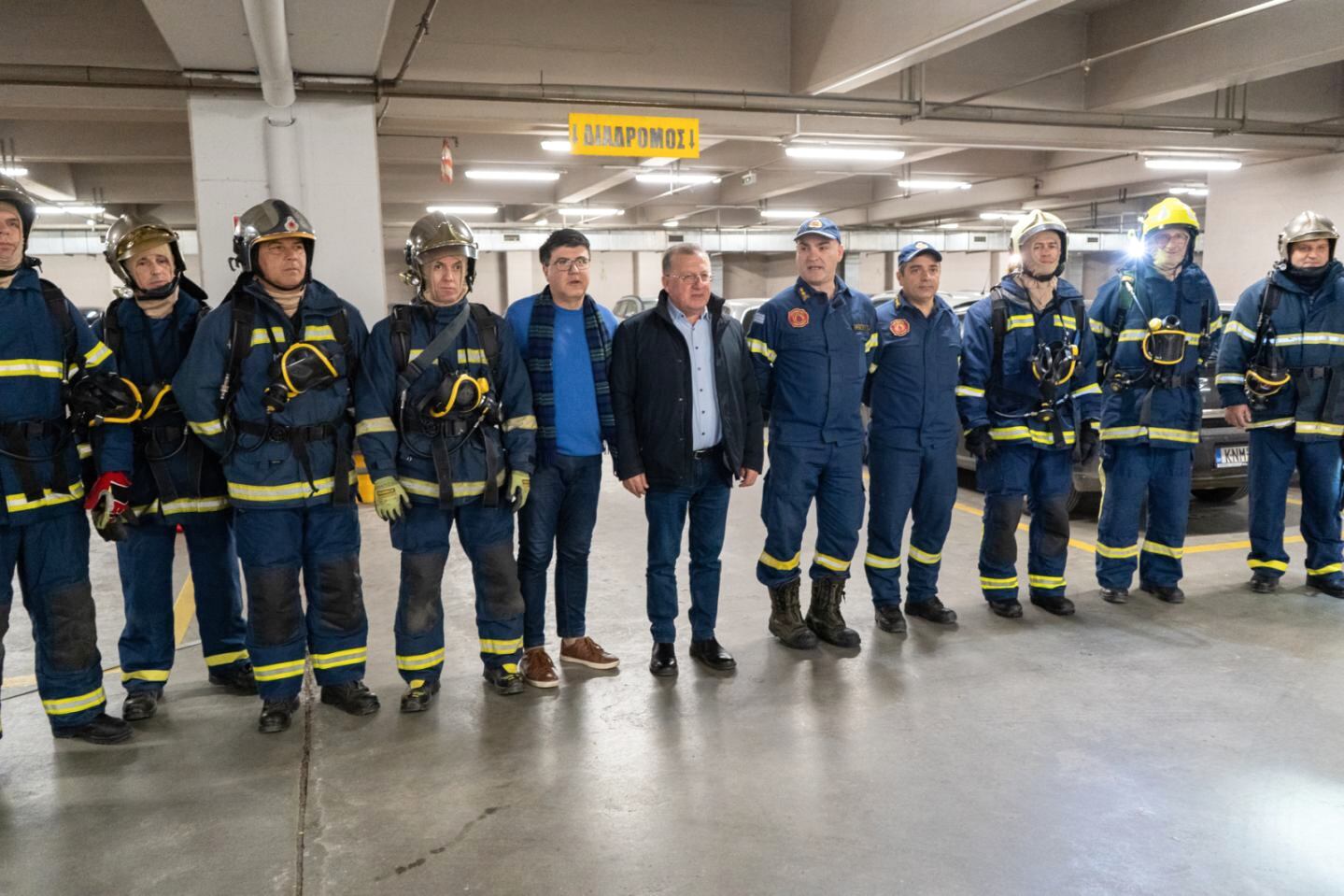 Στην άσκηση έλαβαν μέρος τέσσερα (4) πυροσβεστικά οχήματα με δέκα (10) άνδρες της Πυροσβεστικής, ένα (1) ασθενοφόρο του ΕΚΑΒ, δύο (2) οχήματα της Δημοτικής Αστυνομίας και πέντε (5) στελέχη της, καθώς και το σύνολο του προσωπικού του συγκεκριμένου υπόγειου χώρου στάθμευσης.