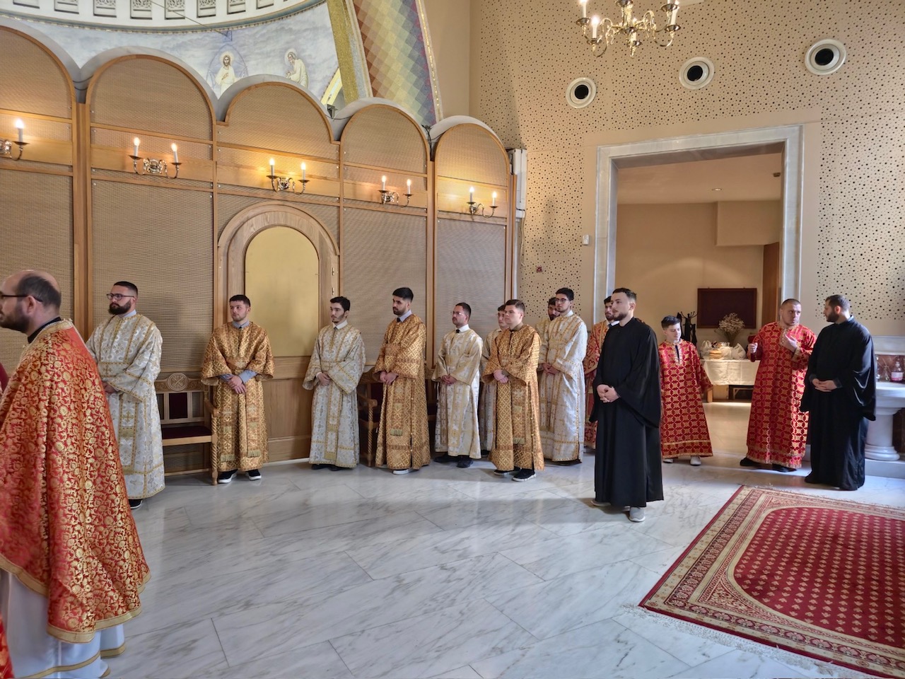 Έψαλαν καλλίφωνοι βυζαντινοί χοροί, αλβανικά η εκκλησιαστική χορωδία και ελληνικά οι νέοι από την Πιερία, ενώ διακόνησαν πολλοί Ιερόπαιδες, Αλβανοί και Έλληνες.