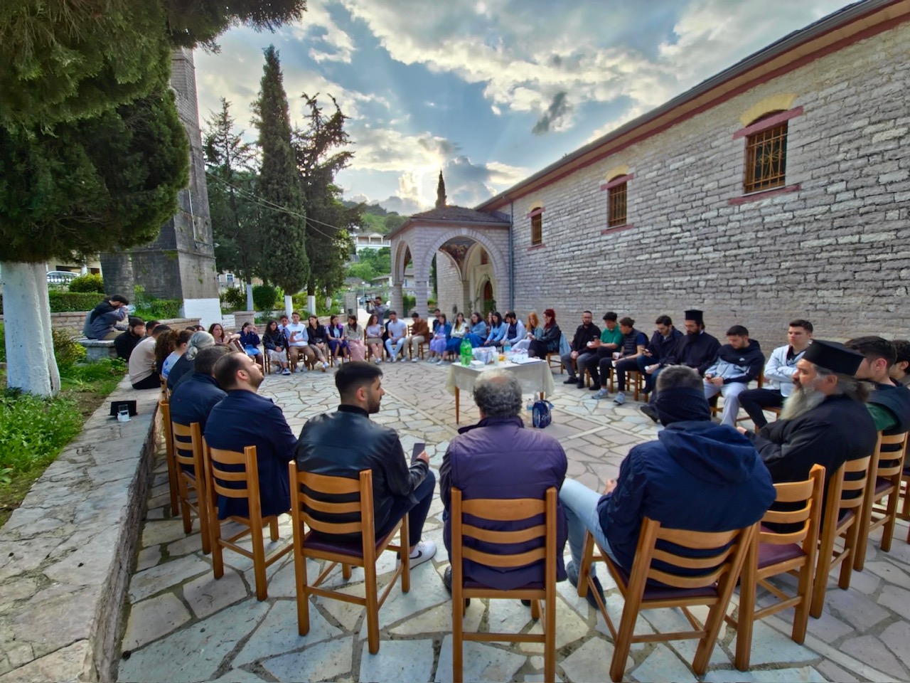 Το απόγευμα της ίδιας ημέρας, στην αίθουσα εκδηλώσεων του Ιερού Καθεδρικού Ναού, πραγματοποιήθηκε συνάντηση επικοινωνίας και γνωριμίας των νέων απο την Πιερία με μέλη της Ορθόδοξης Νεολαίας των Τιράνων. Στη συνάντηση έλαβε μέρος και ο Σεβασμιώτατος Μητροπολίτης Αμαντίας κ. Ναθαναήλ.