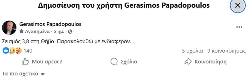 Η ανάρτησή του Γεράσιμου Παπαδόπουλου πριν από λίγες μέρες