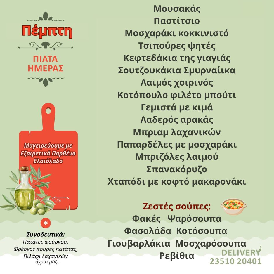 Πιάτα Ημέρας Πέμπτη