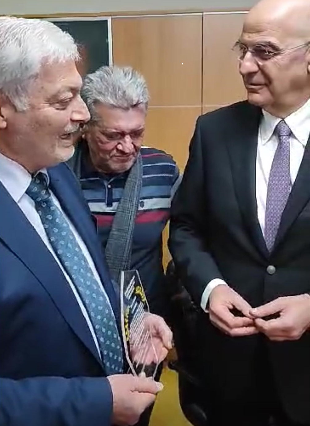 Στις 15 Φεβρουαρίου ο Πρόεδρος Γεωργιάδης Γεώργιος, η Γενική Γραμματέας Μπατάλα Αναστασία και ο Ταμίας του Συνδέσμου Δέλλας Χρήστος, υποδέχτηκαν από κοινού με την Αντιπεριφερειάρχη κ. ΜΑΥΡΙΔΟΥ Σοφία και άλλους εκπροσώπους φορέων της Πιερίας στο γραφείο της κ. Αντιπεριφερειάρχου, τον Υπουργό Εθνικής Άμυνας κ. Δένδια Νικόλαο. Ο Πρόεδρος του Συνδέσμου Γεωργιάδης Γεώργιος μετέφερε του χαιρετισμούς του Προέδρου της Π.Ο.Α.Σ.Α κ. ΜΠΕΤΤΑ Δημητρίου στον κ. Υπουργό, και επέδωσε σε αυτόν τιμητική πλακέτα σε αναγνώριση του έργου του σχετικά με την «Νέα Δομή Δυνάμεων», την «Ατζέντα 2030» και τον «Ψηφιακό Μαχητή».