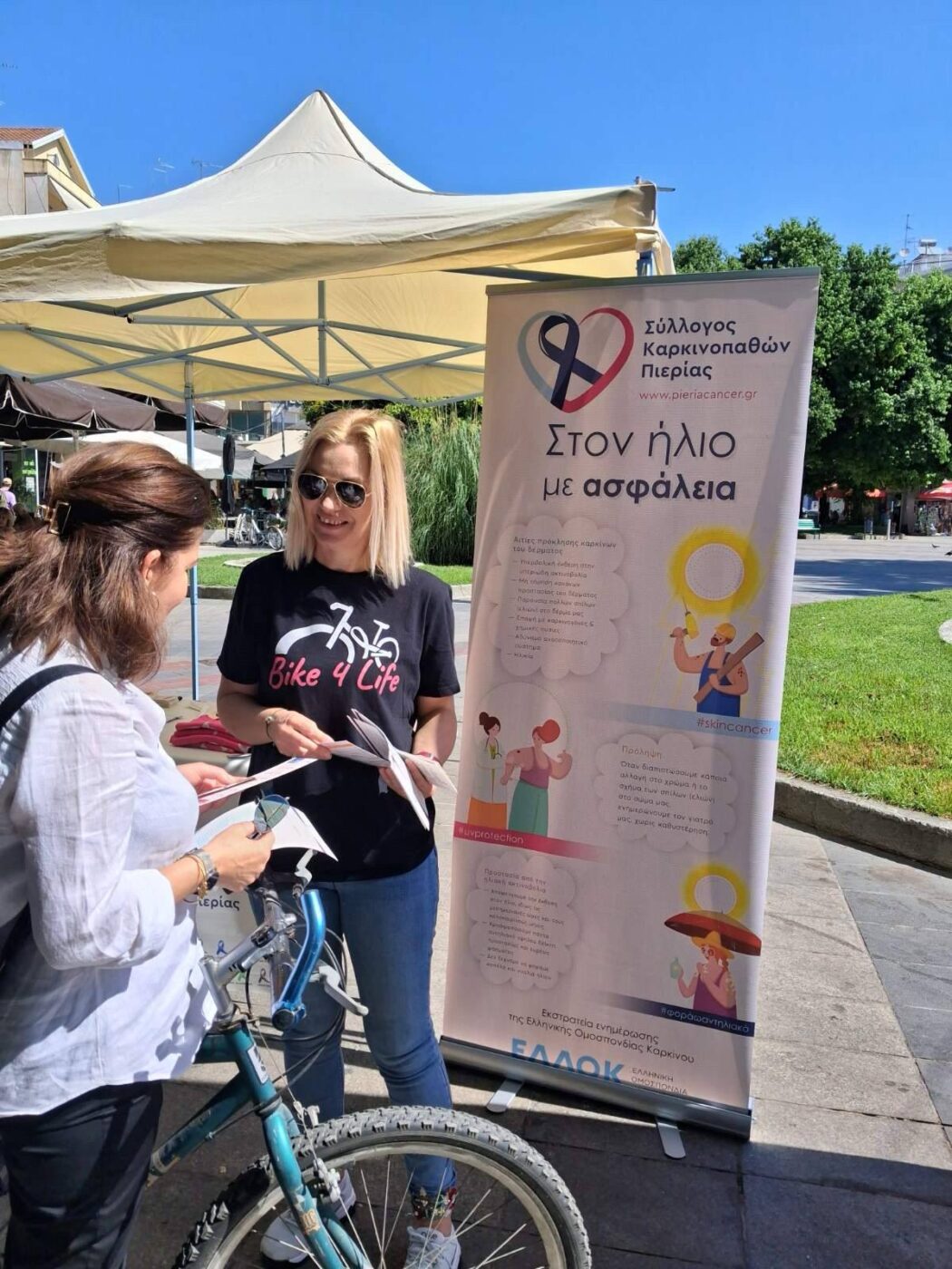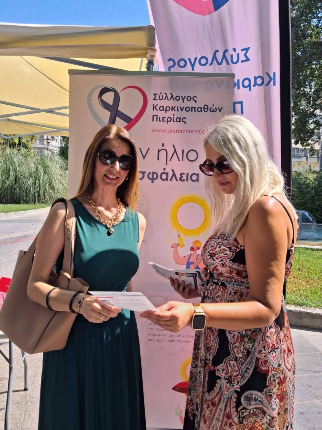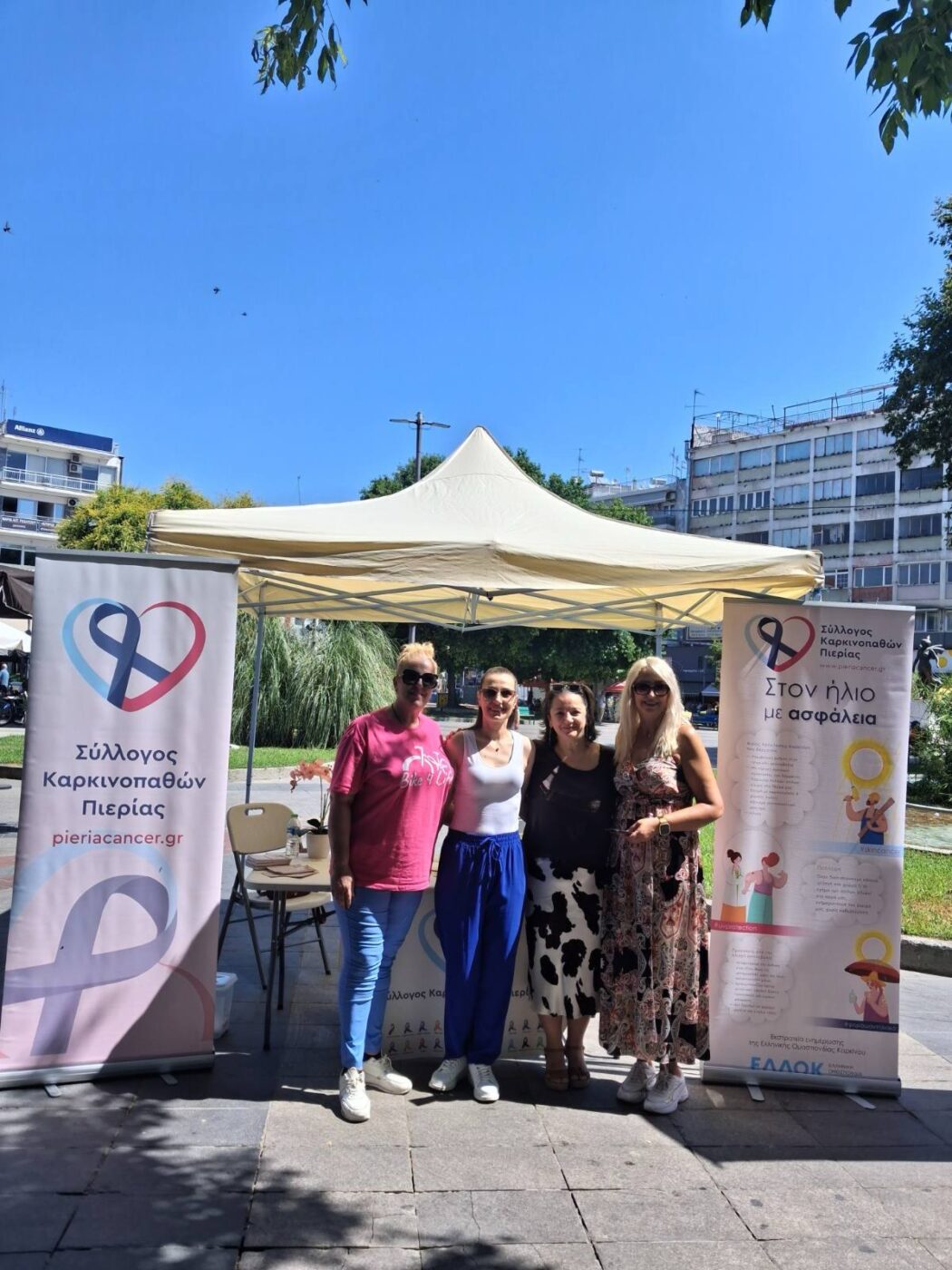 Ο Σύλλογος Καρκινοπαθών Πιερίας ολοκλήρωσε με μεγάλη επιτυχία την πρώτη εκδήλωση της εκστρατείας ενημέρωσης και ευαισθητοποίησης για τον καρκίνο του δέρματος «Στον ήλιο με ασφάλεια». Η εκδήλωση πραγματοποιήθηκε την Τρίτη 24 Ιουνίου 2025 στον πεζόδρομο Κατερίνης, στο ύψος της πλατείας Ελευθερίας προσελκύοντας πλήθος ενδιαφερόμενων πολιτών.