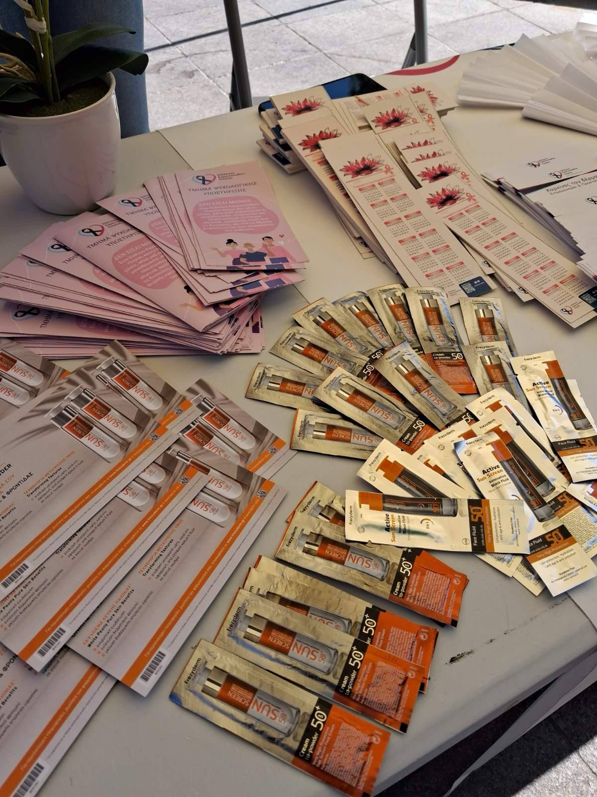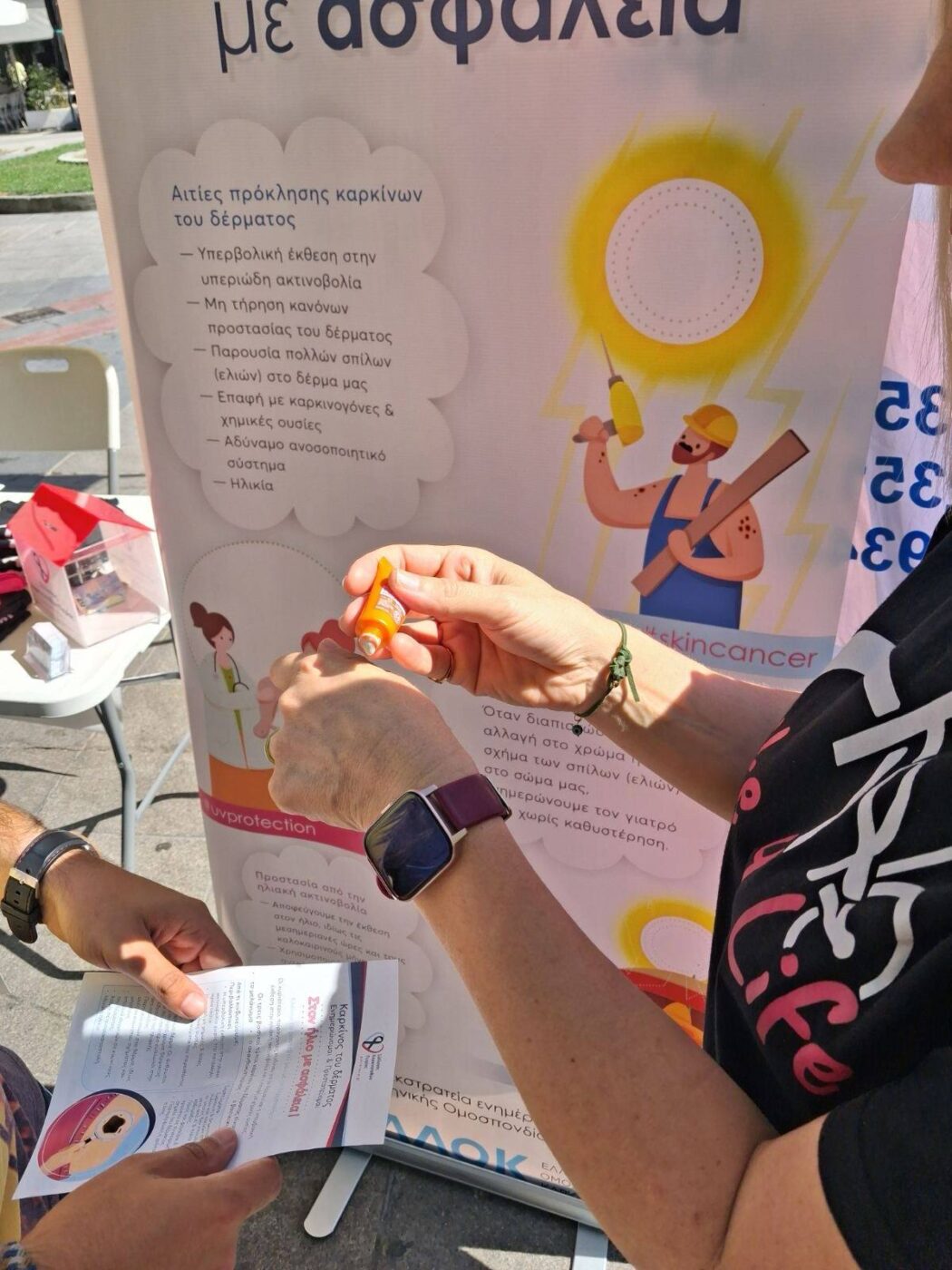 Τα μέλη του Συλλόγου, με την πολύτιμη συνδρομή της Επισκέπτριας Υγείας του ΚΥ Κατερίνης κας Κατερίνας Ρόκα, ενημέρωσαν αναλυτικά το κοινό για τους κινδύνους της ηλιακής ακτινοβολίας, τη σημασία της σωστής προστασίας και τους τρόπους αναγνώρισης ύποπτων συμπτωμάτων. Παράλληλα, διανεμήθηκαν ενημερωτικά φυλλάδια και δείγματα αντηλιακών προϊόντων, προσφέροντας πρακτικές λύσεις για την καθημερινή προστασία.