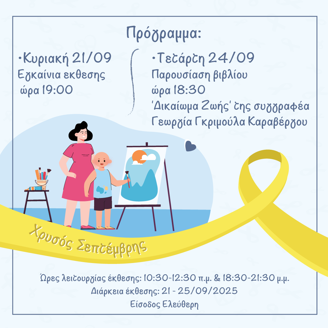 Στο πλαίσιο του «Χρυσού Σεπτέμβρη», μήνα ευαισθητοποίησης για τον παιδικό και εφηβικό καρκίνο, σας καλεί σε μια μοναδική γιορτή Τέχνης και Ελπίδας για μικρούς και μεγάλους.