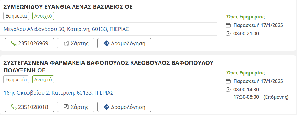 Τα εφημερεύοντα φαρμακεία σήμερα στην Κατερίνη