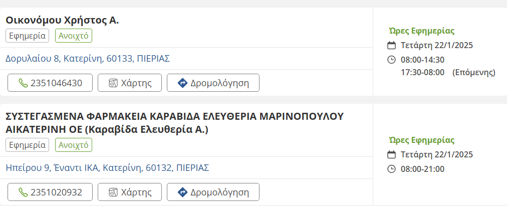 Τα εφημερεύοντα φαρμακεία σήμερα στην Κατερίνη