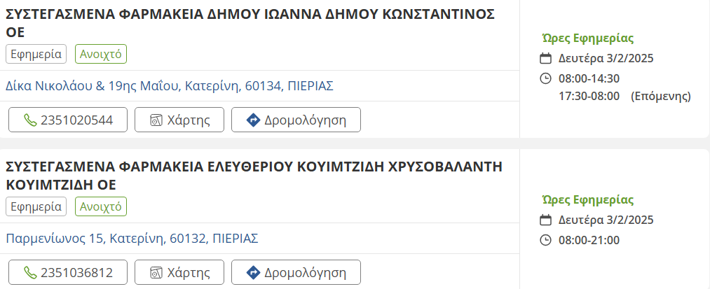 Τα εφημερεύοντα φαρμακεία σήμερα στην Κατερίνη