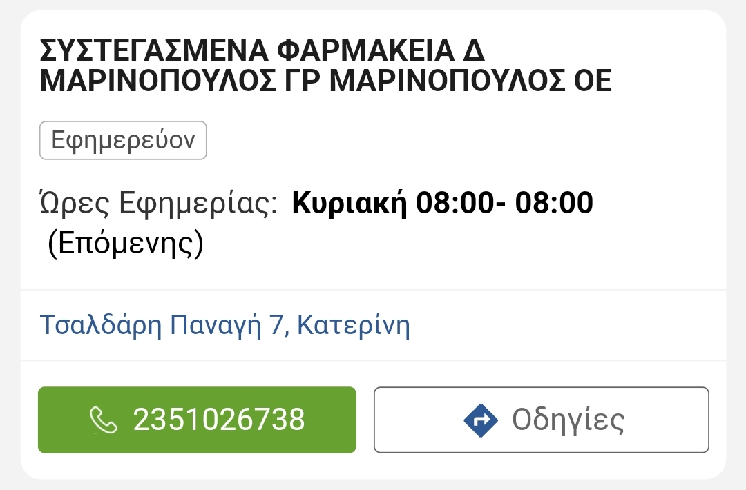 Τοπικά Τα εφημερεύοντα φαρμακεία σήμερα στην Κατερίνη mpantes, 16 Φεβρουαρίου, 2025 1 λεπτά ανάγνωσης Tags #εφημερεύοντα φαρμακεία #Κατερίνη Life Εορτολόγιο: Ποιοι γιορτάζουν σήμερα 16 Φεβρουαρίου Featured, Τοπικά Ο καιρός σήμερα στην Πιερία Σχετικά άρθρα Τοπικά «Το Κιβώτιο» του Άρη Αλεξάνδρου, με τον Φώτη Μακρή στην Κατερίνη 2 λεπτά ανάγνωσης Featured, Τοπικά Πιερία: Δύο συλλήψεις για ναρκωτικά μετά από έρευνες σε σπίτια 1 λεπτά ανάγνωσης Featured, Τοπικά Κρίσεις ΕΛ.ΑΣ. 2026: Παραμένει Υποστράτηγος ο Γεώργιος Τζήμας 1 λεπτά ανάγνωσης Τοπικά Κοπή βασιλόπιτας από το Σωματείο Συνταξιούχων ΟΑΕΕ (ΤΕΒΕ) «Αγία Αικατερίνη» 1 λεπτά ανάγνωσης Τοπικά «CHECK IN για 2» του Μάκη Τσούφη – Mε την Ιωάννα Πηλιχού και τον Κωνσταντίνο Καζάκο αύριο στην Κατερίνη 1 λεπτά ανάγνωσης Τοπικά Φίλοι Μουσείου Πόλης Κατερίνης | Πρόσκληση σε γενική συνέλευση 1 λεπτά ανάγνωσης