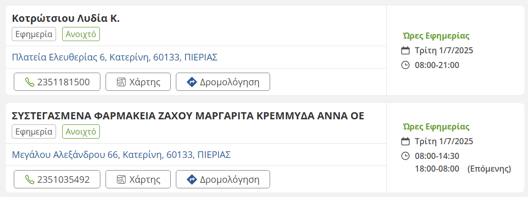 Τοπικά Τα εφημερεύοντα φαρμακεία σήμερα στην Κατερίνη Μαρία Ιωαννίδου, 1 Ιουλίου, 2025 1 λεπτά ανάγνωσης Tags #εφημερεύοντα φαρμακεία #Κατερίνη #σήμερα Τοπικά Προγραμματισμένη διακοπή ρεύματος – Δείτε σε ποιες περιοχές Τοπικά Ο καιρός σήμερα στην Πιερία Σχετικά άρθρα Τοπικά Κατερίνη: Επιστημονική ημερίδα για το εγκεφαλικό και την πρόληψη του 1 λεπτά ανάγνωσης Τοπικά Ετήσιος χορός της Θρακικής Εστίας Κατερίνης 1 λεπτά ανάγνωσης Featured, Τοπικά Κατερίνη: Ξεκινά η ανέγερση του νέου 8ου Δημοτικού Σχολείου 1 λεπτά ανάγνωσης Featured, Τοπικά Το αδιαχώρητο στην κοπή πίτας του ΕΒΕ Πιερίας – Τι ανακοίνωσε η Ν. Κεραμέως 2 λεπτά ανάγνωσης Τοπικά ΚΑΠΗ Κατερίνης: Πρόσκληση σε εκδήλωση 1 λεπτά ανάγνωσης Τοπικά Παρουσίαση βιβλίου στο ΜΑΤΙ: “Το Καταφύγι: Στις φλόγες της αντίστασης” 1 λεπτά ανάγνωσης