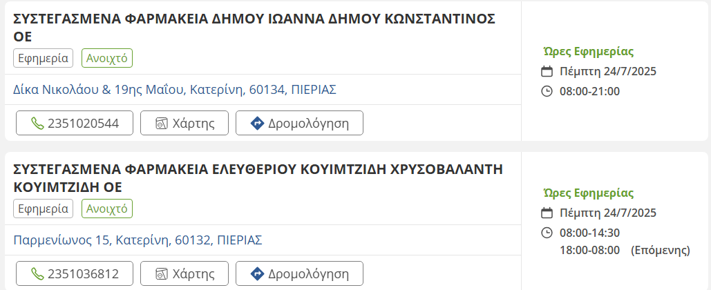 Τοπικά Τα εφημερεύοντα φαρμακεία σήμερα στην Κατερίνη Μαρία Ιωαννίδου, 24 Ιουλίου, 2025 1 λεπτά ανάγνωσης Tags #εφημερεύοντα φαρμακεία #Κατερίνη #σήμερα Τοπικά Προγραμματισμένη διακοπή ρεύματος – Δείτε σε ποιες περιοχές Τοπικά Ο καιρός σήμερα στην Πιερία Σχετικά άρθρα Τοπικά Σήμερα τα «Σπασμένα Τακούνια» – Για μια μοναδική παράσταση στην Κατερίνη! 1 λεπτά ανάγνωσης Τοπικά Πρόσκληση στην Κοπή Πίτας του Συλλόγου “ΒΕΝΙΑΜΙΝ” 1 λεπτά ανάγνωσης Τοπικά Η πρώτη τακτική συνεδρίαση του Διοικητικού Συμβουλίου του Επιμελητηρίου Πιερίας για το 2026 1 λεπτά ανάγνωσης Τοπικά Έρχεται στην Κατερίνη η ροκ–κωμωδία του Γιώργου Μακρή «Η ΓΚΟΛΦΩ ΤΑ ΛΕΕΙ ΑLΛΙΩΣ» 2 λεπτά ανάγνωσης Κηδείες - Μνημόσυνα, Τοπικά «Έφυγε» από τη ζωή ο Νικόλαος Μαγούδης σε ηλικία 62 ετών 1 λεπτά ανάγνωσης Τοπικά Προγραμματισμένη διακοπή ρεύματος – Δείτε σε ποιες περιοχές 1 λεπτά ανάγνωσης