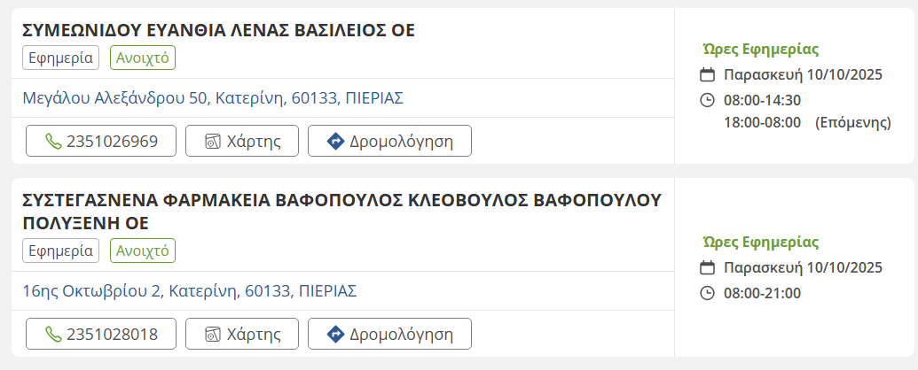 Τα εφημερεύοντα φαρμακεία σήμερα στην Κατερίνη