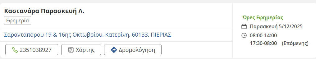 Τα εφημερεύοντα φαρμακεία σήμερα στην Κατερίνη
