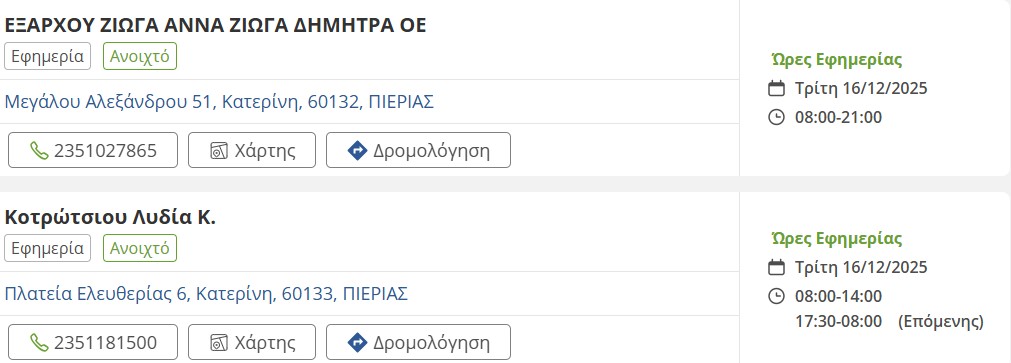 Τοπικά Τα εφημερεύοντα φαρμακεία σήμερα στην Κατερίνη odelalis, 16 Δεκεμβρίου, 2025 1 λεπτά ανάγνωσης Tags #εφημερεύοντα φαρμακεία #Κατερίνη #σήμερα Διαφήμιση Quick Café – Καφές, Μπουγάτσα & Σνακ παντού! Τοπικά Ο καιρός σήμερα στην Πιερία Σχετικά άρθρα Γνώμες - Άρθρα, Τοπικά Γιατί πολεμούν τον Καποδίστρια; | Του Κ. Κορομπίλη 1 λεπτά ανάγνωσης Featured, Τοπικά Η «Παναγία Σουμελά»: Τίμησε τον δημοσιογράφο Νίκο Ασλανίδη (vid) 1 λεπτά ανάγνωσης Τοπικά Κατερίνη: Ποδαρικό με χρηματοδότηση για ασφαλείς και σύγχρονους Βρεφονηπιακούς Σταθμούς 1 λεπτά ανάγνωσης Featured, Τοπικά Ξεκινούν οι εργασίες κατασκευής της νέας αποθήκης της ΔΕΥΑΚ 2 λεπτά ανάγνωσης Featured, Τοπικά Η Πιερία σε ταξιδιωτικό περιοδικό της Δανίας! 1 λεπτά ανάγνωσης Τοπικά Δήμος Κατερίνης: Εθελοντική αιμοδοσία – Δώσε Αίμα, Χάρισε Ζωή! 1 λεπτά ανάγνωσης