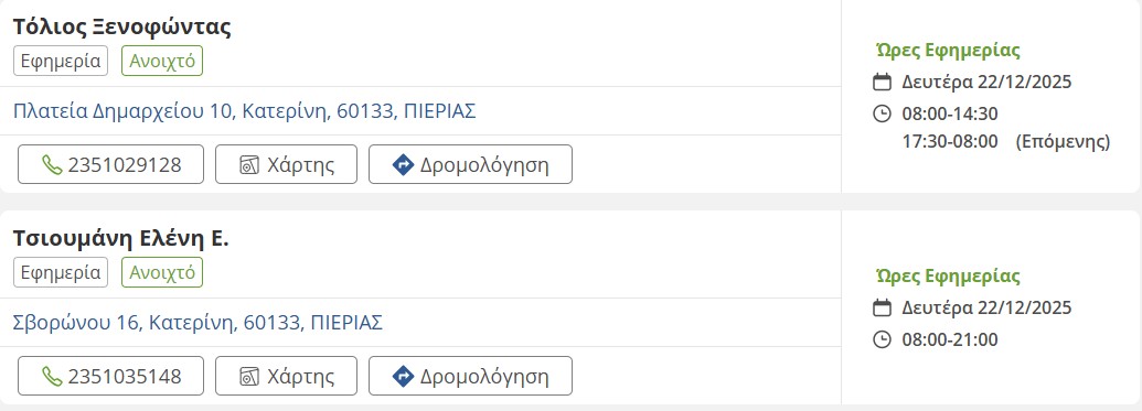 Τοπικά Τα εφημερεύοντα φαρμακεία σήμερα στην Κατερίνη odelalis, 22 Δεκεμβρίου, 2025 1 λεπτά ανάγνωσης Tags #εφημερεύοντα φαρμακεία #Κατερίνη #σήμερα Διαφήμιση Quick Café – Καφές, Μπουγάτσα & Σνακ παντού! Τοπικά Ο καιρός σήμερα στην Πιερία Σχετικά άρθρα Τοπικά Masquerini Passarella 2026 και… κάντε τη δική σας ομάδα! 1 λεπτά ανάγνωσης Featured, Τοπικά Ρίψεις αλατιού στο οδικό δίκτυο της Πιερίας – Πού χρειάζεται προσοχή 1 λεπτά ανάγνωσης Τοπικά Η ετήσια συνεστίαση του Ποντιακού Συλλόγου “Παναγία Σουμελά” 1 λεπτά ανάγνωσης Τοπικά Πιερία: Κηδεύτηκε ο άτυχος κτηνοτρόφος στην Βροντού (Vid) 1 λεπτά ανάγνωσης Γνώμες - Άρθρα, Τοπικά Γιατί πολεμούν τον Καποδίστρια; | Του Κ. Κορομπίλη 1 λεπτά ανάγνωσης Featured, Τοπικά Η «Παναγία Σουμελά»: Τίμησε τον δημοσιογράφο Νίκο Ασλανίδη (vid) 1 λεπτά ανάγνωσης