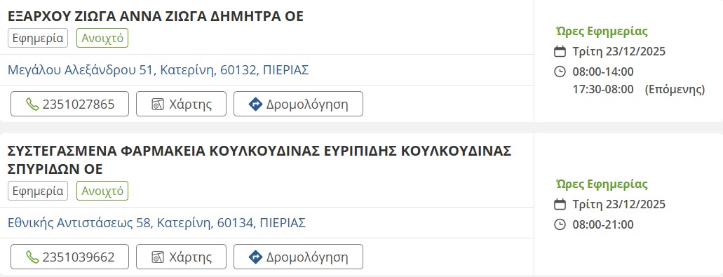 Τοπικά Τα εφημερεύοντα φαρμακεία σήμερα στην Κατερίνη odelalis, 23 Δεκεμβρίου, 2025 1 λεπτά ανάγνωσης Tags #εφημερεύοντα φαρμακεία #Κατερίνη #σήμερα Διαφήμιση Καλά Χριστούγεννα από την επιχείρηση Γκούνας & Συνεργάτες Τοπικά Ο καιρός σήμερα στην Πιερία Σχετικά άρθρα Τοπικά Εκδρομή στην Αθήνα, στιγμές που χαράζονται ανεξίτηλα στη μνήμη μας… 2 λεπτά ανάγνωσης Featured, Τοπικά Δολοφονία στη Λεπτοκαρυά: Ισόβια στην 35χρονη που έθαψε τον σύντροφό της στην αυλή 1 λεπτά ανάγνωσης Featured, Τοπικά Κατερίνη: Οδηγός χτύπησε σε τρία σταθμευμένα οχήματα 1 λεπτά ανάγνωσης Τοπικά Άννα Τζήκα: Στο επίκεντρο η ασφάλεια των πολιτών στη συνάντηση με τον Γενικό Γραμματέα Πολιτικής Προστασίας 1 λεπτά ανάγνωσης Featured, Τοπικά Πιερία: Τέλος οι παρακάμψεις στον βόρειο κόμβο Κατερίνης 1 λεπτά ανάγνωσης Τοπικά Κοπή βασιλόπιτας από το Σωματείο Συνταξιούχων ΟΑΕΕ (ΤΕΒΕ) «Αγία Αικατερίνη» 1 λεπτά ανάγνωσης