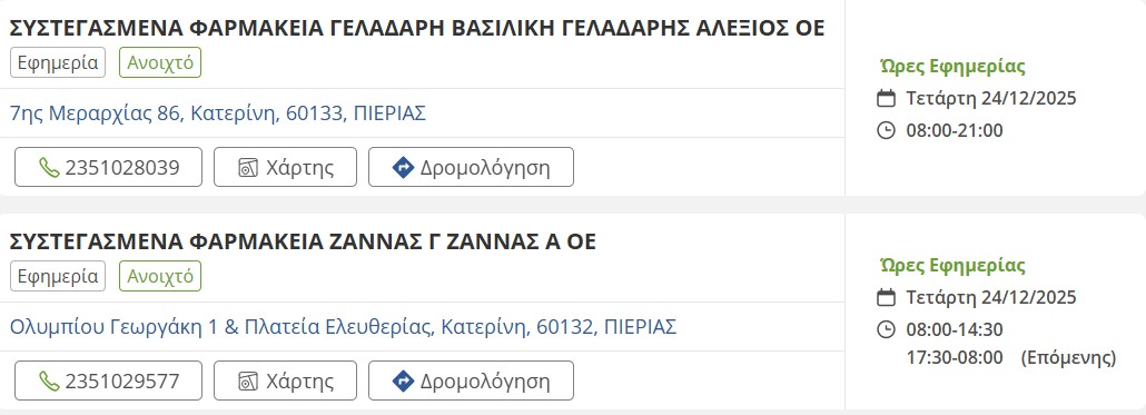 Τοπικά Τα εφημερεύοντα φαρμακεία σήμερα στην Κατερίνη odelalis, 24 Δεκεμβρίου, 2025 1 λεπτά ανάγνωσης Tags #εφημερεύοντα φαρμακεία #Κατερίνη #σήμερα Κηδείες - Μνημόσυνα, Τοπικά «Έφυγε» από τη ζωή ο Αλέξανδρος Χαλβατζής σε ηλικία 59 ετών Τοπικά Ο καιρός σήμερα στην Πιερία Σχετικά άρθρα Τοπικά Masquerini Passarella 2026 και… κάντε τη δική σας ομάδα! 1 λεπτά ανάγνωσης Featured, Τοπικά Ρίψεις αλατιού στο οδικό δίκτυο της Πιερίας – Πού χρειάζεται προσοχή 1 λεπτά ανάγνωσης Τοπικά Η ετήσια συνεστίαση του Ποντιακού Συλλόγου “Παναγία Σουμελά” 1 λεπτά ανάγνωσης Τοπικά Πιερία: Κηδεύτηκε ο άτυχος κτηνοτρόφος στην Βροντού (Vid) 1 λεπτά ανάγνωσης Γνώμες - Άρθρα, Τοπικά Γιατί πολεμούν τον Καποδίστρια; | Του Κ. Κορομπίλη 1 λεπτά ανάγνωσης Featured, Τοπικά Η «Παναγία Σουμελά»: Τίμησε τον δημοσιογράφο Νίκο Ασλανίδη (vid) 1 λεπτά ανάγνωσης