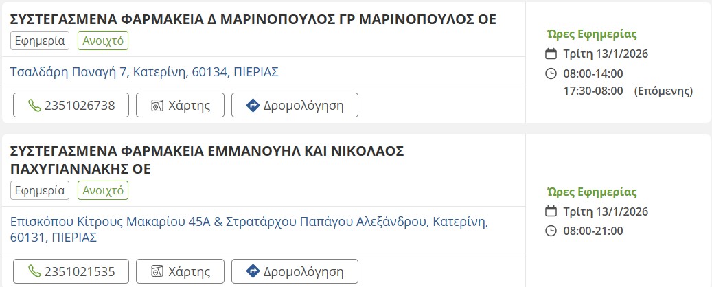Τα εφημερεύοντα φαρμακεία σήμερα στην Κατερίνη