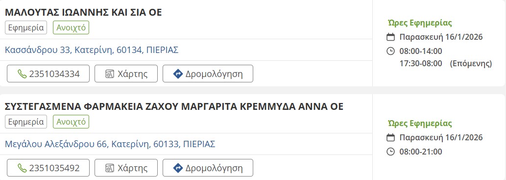 Τα εφημερεύοντα φαρμακεία σήμερα στην Κατερίνη