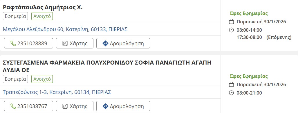 Τα εφημερεύοντα φαρμακεία σήμερα στην Κατερίνη