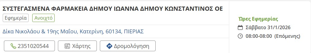Τα εφημερεύοντα φαρμακεία σήμερα στην Κατερίνη