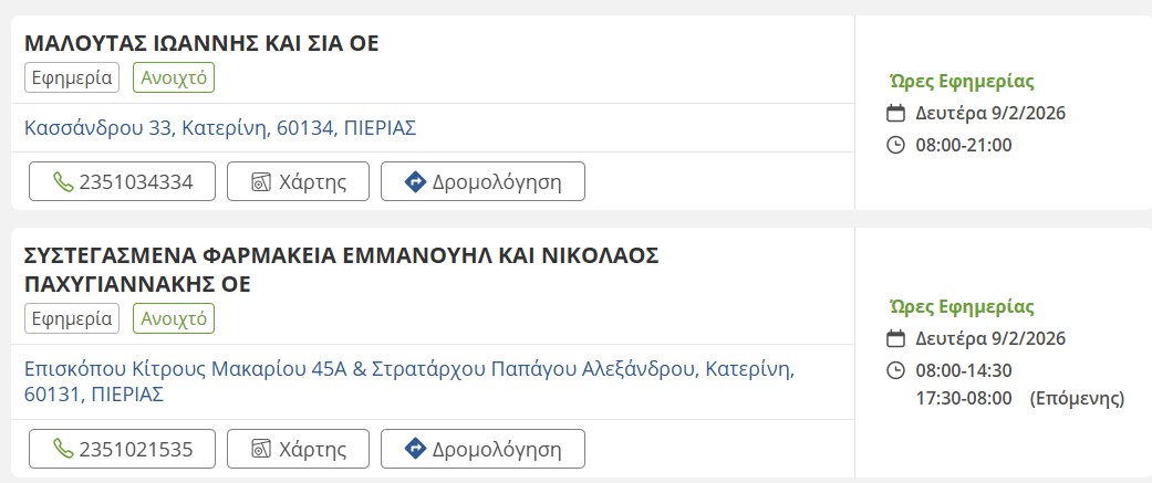 Τα εφημερεύοντα φαρμακεία σήμερα στην Κατερίνη