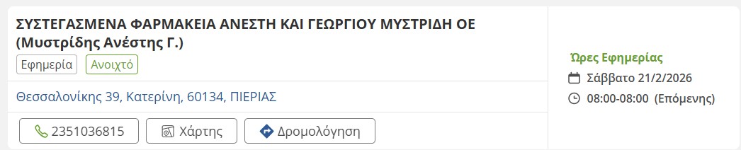Τα εφημερεύοντα φαρμακεία σήμερα στην Κατερίνη