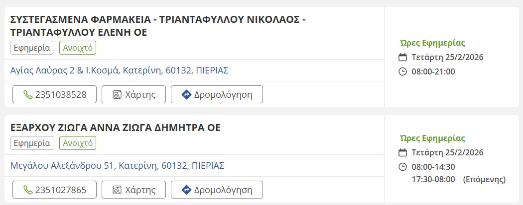 Τα εφημερεύοντα φαρμακεία σήμερα στην Κατερίνη