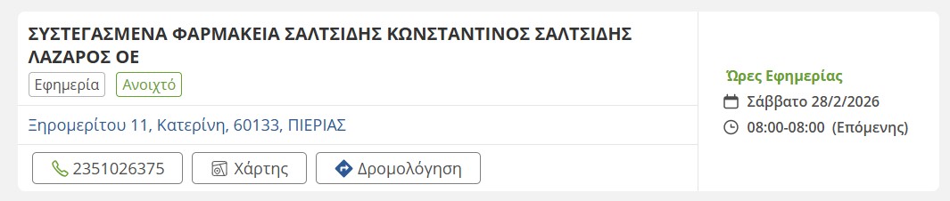 Τα εφημερεύοντα φαρμακεία σήμερα στην Κατερίνη