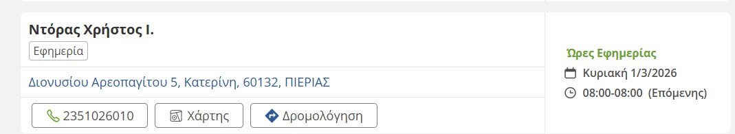 Τοπικά Τα εφημερεύοντα φαρμακεία σήμερα στην Κατερίνη Μαρία Ιωαννίδου, 1 Μαρτίου, 2026 1 λεπτά ανάγνωσης Tags #εφημερεύοντα φαρμακεία #Κατερίνη #σήμερα Τοπικά Προγραμματισμένη διακοπή ρεύματος – Δείτε σε ποιες περιοχές Αγροτικά Το Μάιο το 6ο Συνέδριο Γεωγραφικών Πληροφοριακών Συστημάτων Χωρικής Ανάλυσης στη Γεωργία και το Περιβάλλον Σχετικά άρθρα Τοπικά Δημοτικό Ωδείο Κατερίνης: Ρεσιτάλ Κλαρινέτου την Πέμπτη 1 λεπτά ανάγνωσης Τοπικά Προγραμματισμένη διακοπή ρεύματος – Δείτε σε ποιες περιοχές 1 λεπτά ανάγνωσης Τοπικά Ο καιρός σήμερα στην Πιερία 1 λεπτά ανάγνωσης Featured, Τοπικά EBE Πιερίας: Στο πλευρό των ταξί για τη φορολογία και την ηλεκτροκίνηση 2 λεπτά ανάγνωσης Featured, Τοπικά Φόρος τιμής στον Αιμίλιο Ξανθόπουλο και τους 39 πατριώτες που εκτελέστηκαν το ’43 2 λεπτά ανάγνωσης Τοπικά Μονοήμερη εκδρομή της Ένωσης Συνταξιούχων Εμπόρων Ο.Α.Ε.Ε. Ν. Πιερίας 1 λεπτά ανάγνωσης