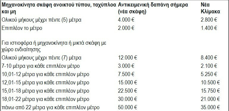 Με το νέο καθεστώς, μειώνεται κατά 30% η τεκμαρτή δαπάνη και για τα νεότερα σκάφη, καθώς οι δαπάνες συντήρησης δεν είναι υψηλότερες στα νεότερα.
