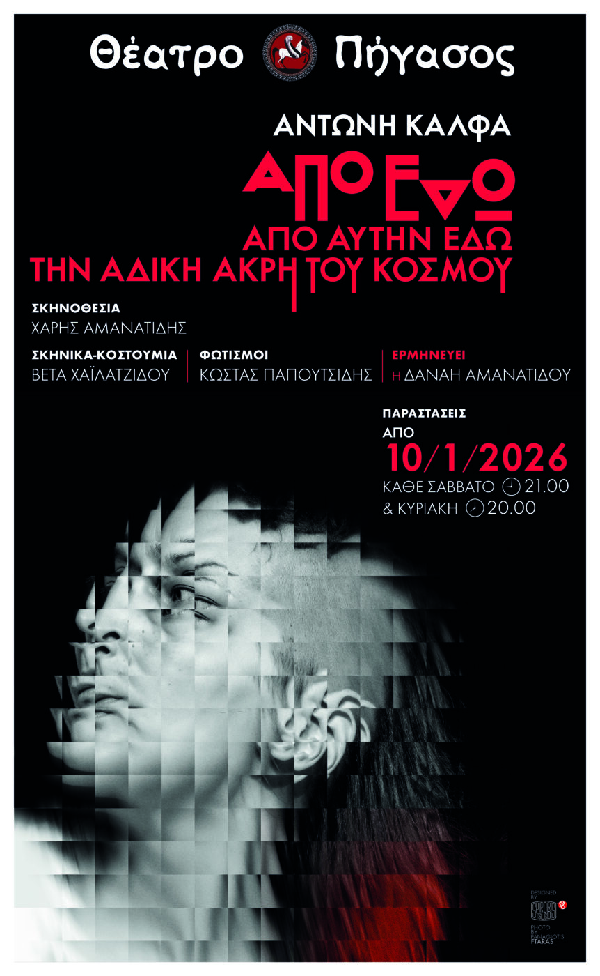 Παραστάσεις κάθε Σάββατο στις 9.οο μ.μ και Κυριακές στις 8.οο μ.μ, στη σκηνή του Θεάτρου ΠΗΓΑΣΟΣ, Αγίας Αικατερίνης 16.