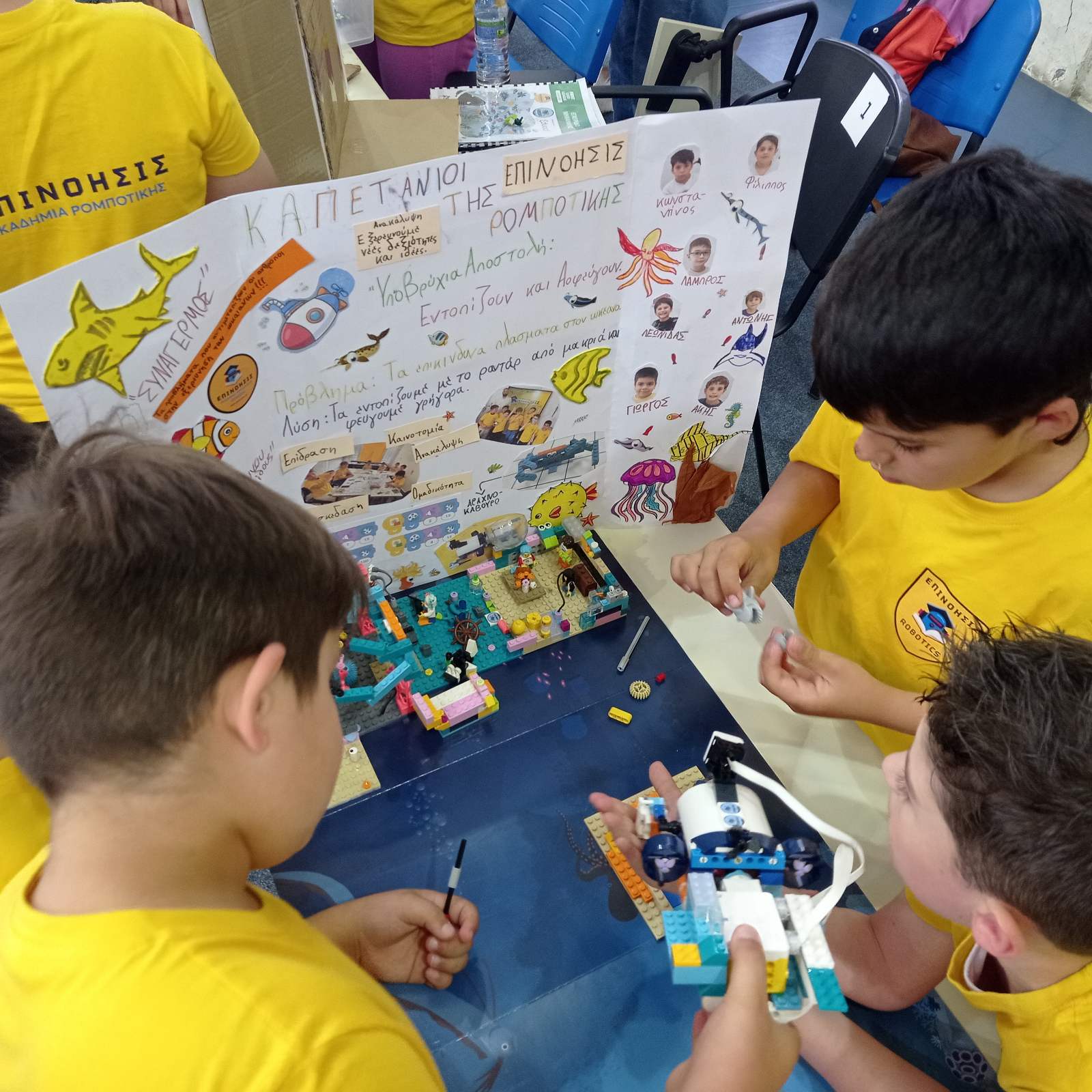 Η αποστολή της Ακαδημία Ρομποτικής Κατερίνης «ΕΠΙΝΟΗΣΙΣ», με επικεφαλής τους Σταμάτη Χατζηχριστοδούλου (Πληροφορικό) και Γιάννη Πένκη (Φιλόλογο), συμμετείχε με 16 ομάδες παιδιών ηλικίας 4 έως 12 ετών, παρουσιάζοντας εμπνευσμένα projects, εξερευνώντας τον μαγικό κόσμο του βυθού. Οι μικροί σπουδαστές εντυπωσίασαν με τις κατασκευές τους και τη μεθοδική δουλειά που παρουσίασαν μπροστά σε κριτές, γονείς, επισκέπτες και άλλες ομάδες.