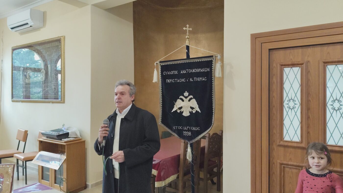 Ο Σύλλογος Ανατολικοθρακών Περίστασης και Νομού Πιερίας, με σεβασμό στην παράδοση και τις ρίζες του, πραγματοποίησε σήμερα, 9 Φεβρουαρίου, την καθιερωμένη κοπή της βασιλόπιτας, αμέσως μετά τη Θεία Λειτουργία. Την πίτα ευλόγησε ο ιερέας του Ιερού Ναού Αγίου Γεωργίου, πατήρ Χρήστος.