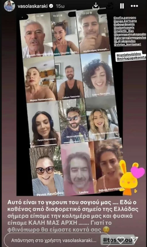 Λίγες ώρες μετά την ανακοίνωση του Ηλία Μελέτη, οι πρωταγωνιστές της σειράς «συναντήθηκαν» μέσω βιντεοκλήσης και η Βάσω Λασκαράκη έκανε σχετική ανάρτηση στο Instagram.