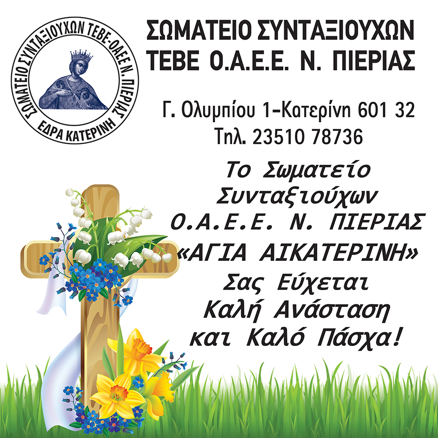 Το Σωματείο Συνταξιούχων ΤΕΒΕ Ο.Α.Ε.Ε. Ν. Πιερίας σας εύχονται Καλό Πάσχα