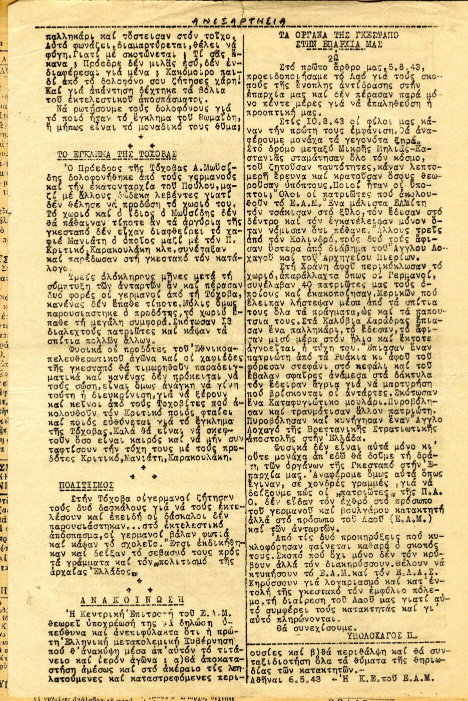 Υ.Γ. Στις φωτογραφίες, η εφημερίδα της Ε.Ε. του Ε.Α.Μ. Πιερίας με σχετική αναφορά στο γεγονός και ο πατέρας Παπάζογλου με ένα από τα παιδιά του. Αντιπροσωπεία της ΔΕ του παραρτηματος κατέθεσε στεφάνι στο μνημείο των πεσόντων.
