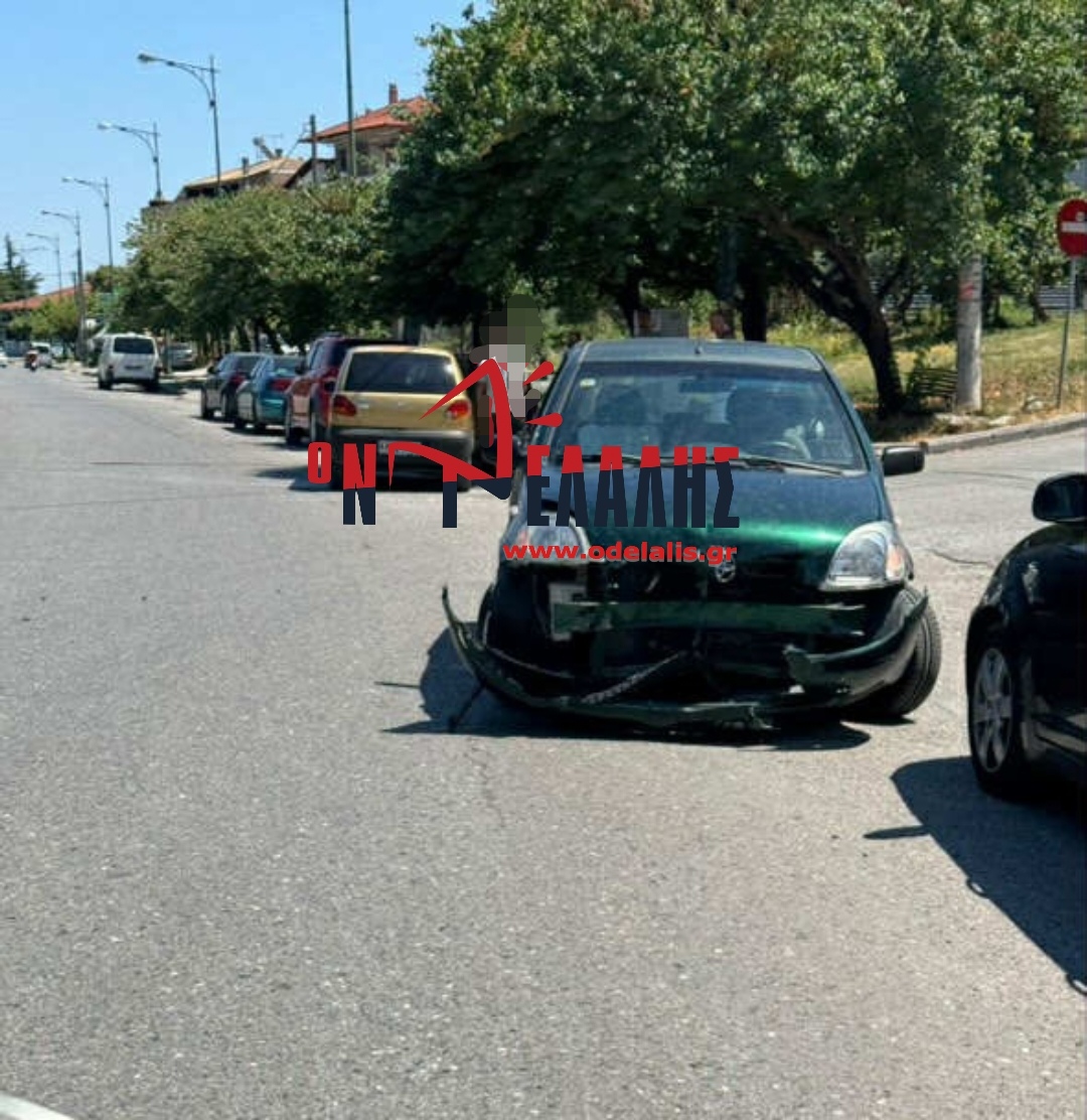 Τροχαίο ατύχημα σημειώθηκε το μεσημέρι του Σαββάτου, 5 Ιουλίου, στην Κατερίνη, στη διασταύρωση των οδών Εφέσου και 19ης Μαΐου, κοντά στο ψητοπωλείο “Σερίφης”.