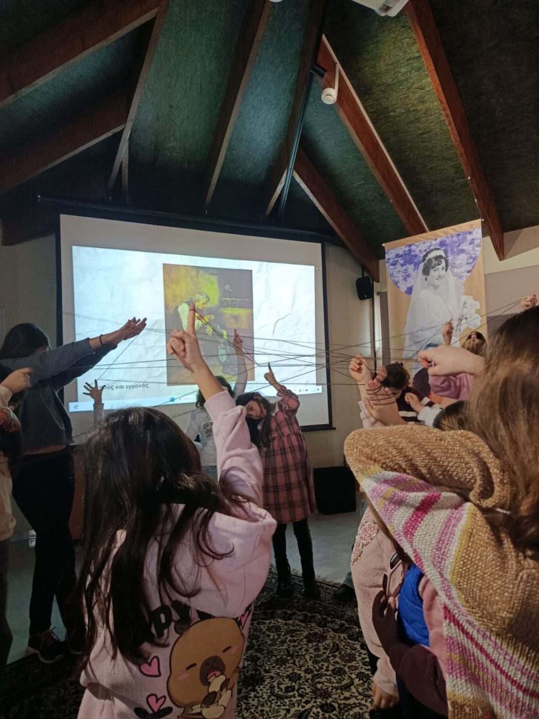 Στη συνέχεια, τα παιδιά περιηγήθηκαν στην έκθεση φωτογραφίας «Μάνες» που επιμελήθηκε ο κ. Νίκος Γραίκος και φιλοξενείται στο Πνευματικό Κέντρο «Άγιος Φώτιος», η οποία αποτέλεσε αφορμή για να εξερευνήσουν το «κουβάρι της μητρότητας». Ειδικότερα, με αφετηρία την εικονογράφηση του παραμυθιού «Εγώ είμαι το κουβάρι κι εσύ η κλωστή» του Alberto Pellai, κάθε παιδί ξετύλιξε το δικό του κουβάρι και σιγά σιγά πλέχτηκε ένας μοναδικός ιστός αγάπης ανάμεσα στη μητέρα και το παιδί. Σε κάθε πλέξη, τα παιδιά μοιράστηκαν προσωπικές ιστορίες και στιγμές με τη μοναδική τους μαμά.